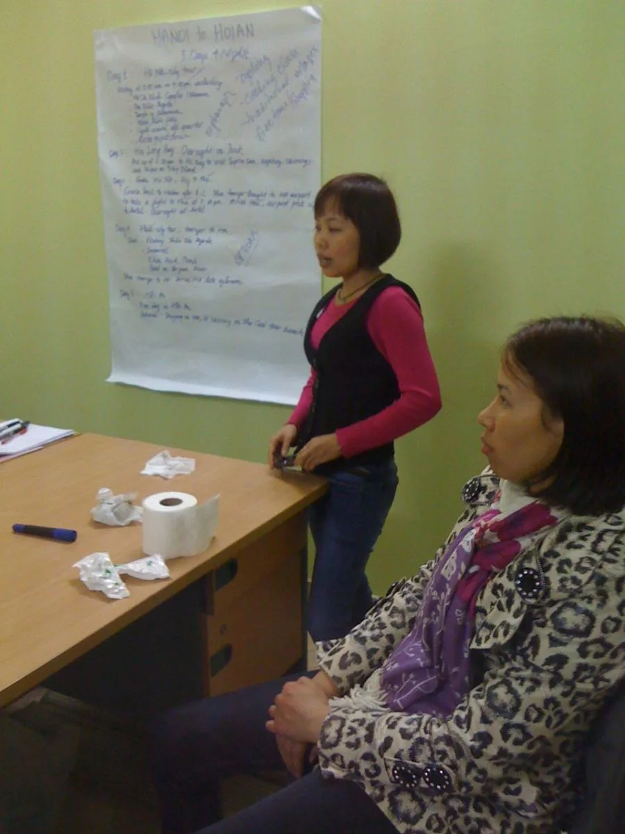 The workshop started off with a painting challenge. With all the colours to choose from, Footprint staff let their imaginations run wild, and their creativity shine through on their paintings. By the end, each staff member had their own inspirational picture of a Vietnam destination. Some even painted pictures of each other enjoying the places they had painted. For some of the staff never painting before, there were some pretty amazing pieces.